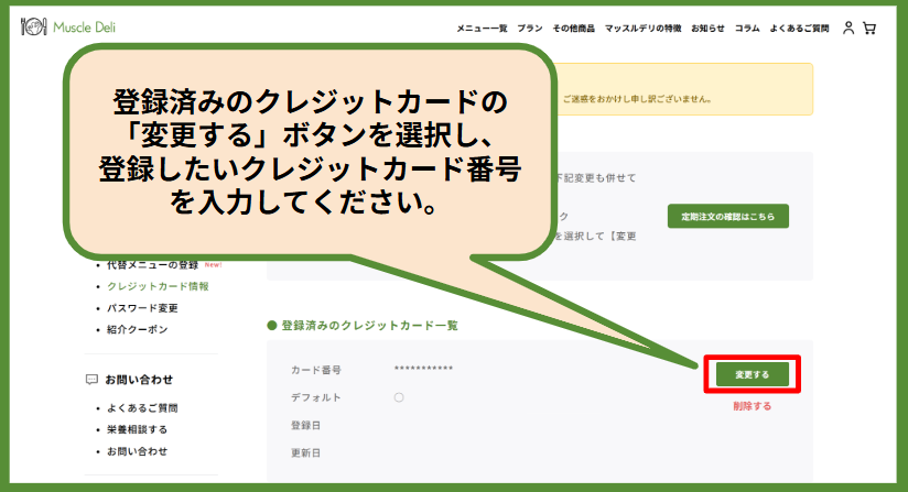 新しいクレジットカードに切り替えたい場合は、下記の手順でご変更ください。